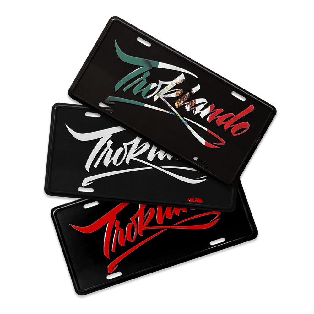 Trokiando logo steel embossed license plates